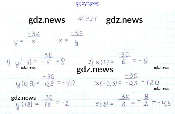 Как эффективно готовиться к домашним заданиям по Алгебре за 8 класс: лучшие стратегии и советы на gdz.news. Здесь подготовлен Учебник Мерзляк, Полонский, Якир Алгоритм успеха - §10. Функция. y=k/x и её график 321 и готовые ответы к ним. Сверяй домашку и получай отличные оценки!