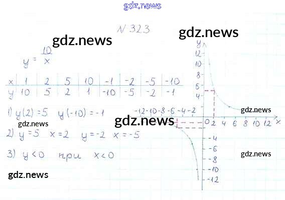 Как эффективно готовиться к домашним заданиям по Алгебре за 8 класс: лучшие стратегии и советы на gdz.news. Здесь подготовлен Учебник Мерзляк, Полонский, Якир Алгоритм успеха - §10. Функция. y=k/x и её график 323 и готовые ответы к ним. Сверяй домашку и получай отличные оценки!