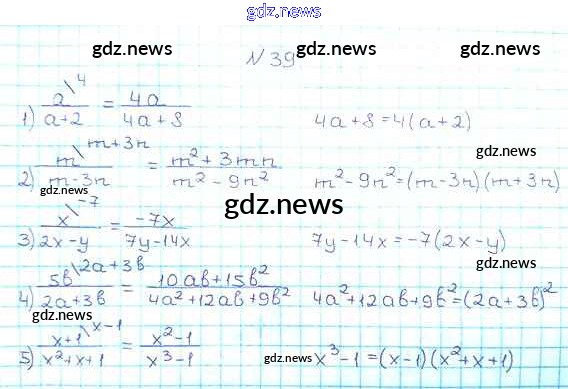 Как эффективно готовиться к домашним заданиям по Алгебре за 8 класс: лучшие стратегии и советы на gdz.news. Здесь подготовлен Учебник Мерзляк, Полонский, Якир Алгоритм успеха - §2. Основное свойство рациональной дроби 39 и готовые ответы к ним. Сверяй домашку и получай отличные оценки!