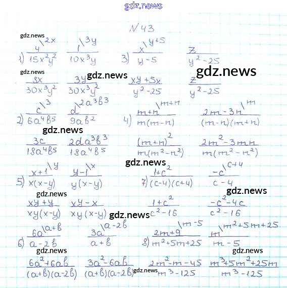 Как эффективно готовиться к домашним заданиям по Алгебре за 8 класс: лучшие стратегии и советы на gdz.news. Здесь подготовлен Учебник Мерзляк, Полонский, Якир Алгоритм успеха - §2. Основное свойство рациональной дроби 43 и готовые ответы к ним. Сверяй домашку и получай отличные оценки!