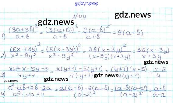 Как эффективно готовиться к домашним заданиям по Алгебре за 8 класс: лучшие стратегии и советы на gdz.news. Здесь подготовлен Учебник Мерзляк, Полонский, Якир Алгоритм успеха - §2. Основное свойство рациональной дроби 44 и готовые ответы к ним. Сверяй домашку и получай отличные оценки!