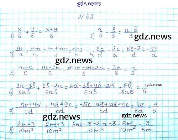 Как эффективно готовиться к домашним заданиям по Алгебре за 8 класс: лучшие стратегии и советы на gdz.news. Здесь подготовлен Учебник Мерзляк, Полонский, Якир Алгоритм успеха - §3. Сложение и вычитание рациональных дробей с одинаковыми знаменателями 68 и готовые ответы к ним. Сверяй домашку и получай отличные оценки!