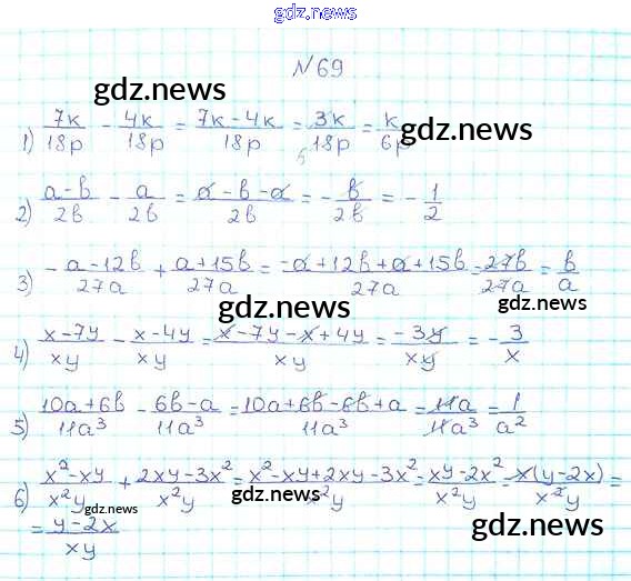 Как эффективно готовиться к домашним заданиям по Алгебре за 8 класс: лучшие стратегии и советы на gdz.news. Здесь подготовлен Учебник Мерзляк, Полонский, Якир Алгоритм успеха - §3. Сложение и вычитание рациональных дробей с одинаковыми знаменателями 69 и готовые ответы к ним. Сверяй домашку и получай отличные оценки!