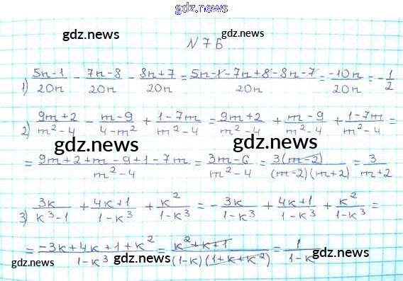 ГДЗ по Алгебре за 8 класс Мерзляк, Полонский Учебник Алгоритм успеха - §3. Сложение и вычитание рациональных дробей с одинаковыми знаменателями 76