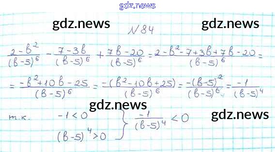 Как эффективно готовиться к домашним заданиям по Алгебре за 8 класс: лучшие стратегии и советы на gdz.news. Здесь подготовлен Учебник Мерзляк, Полонский, Якир Алгоритм успеха - §3. Сложение и вычитание рациональных дробей с одинаковыми знаменателями 84 и готовые ответы к ним. Сверяй домашку и получай отличные оценки!
