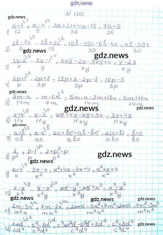 ГДЗ по Алгебре за 8 класс Мерзляк, Полонский Учебник Алгоритм успеха - §4. Сложение и вычитание рациональных дробей с разными знаменателями 100