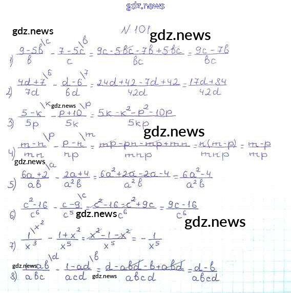 Как эффективно готовиться к домашним заданиям по Алгебре за 8 класс: лучшие стратегии и советы на gdz.news. Здесь подготовлен Учебник Мерзляк, Полонский, Якир Алгоритм успеха - §4. Сложение и вычитание рациональных дробей с разными знаменателями 101 и готовые ответы к ним. Сверяй домашку и получай отличные оценки!