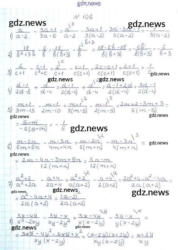 Как эффективно готовиться к домашним заданиям по Алгебре за 8 класс: лучшие стратегии и советы на gdz.news. Здесь подготовлен Учебник Мерзляк, Полонский, Якир Алгоритм успеха - §4. Сложение и вычитание рациональных дробей с разными знаменателями 106 и готовые ответы к ним. Сверяй домашку и получай отличные оценки!