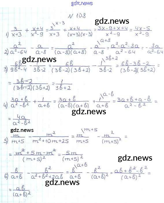 Как эффективно готовиться к домашним заданиям по Алгебре за 8 класс: лучшие стратегии и советы на gdz.news. Здесь подготовлен Учебник Мерзляк, Полонский, Якир Алгоритм успеха - §4. Сложение и вычитание рациональных дробей с разными знаменателями 108 и готовые ответы к ним. Сверяй домашку и получай отличные оценки!