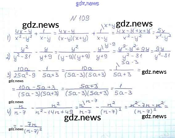Как эффективно готовиться к домашним заданиям по Алгебре за 8 класс: лучшие стратегии и советы на gdz.news. Здесь подготовлен Учебник Мерзляк, Полонский, Якир Алгоритм успеха - §4. Сложение и вычитание рациональных дробей с разными знаменателями 109 и готовые ответы к ним. Сверяй домашку и получай отличные оценки!