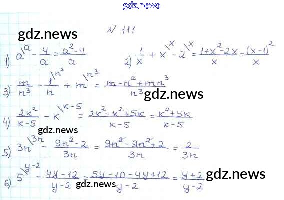 ГДЗ по Алгебре за 8 класс Мерзляк, Полонский Учебник Алгоритм успеха - §4. Сложение и вычитание рациональных дробей с разными знаменателями 111