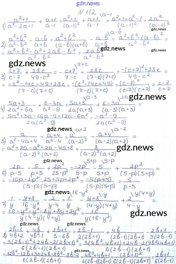 Как эффективно готовиться к домашним заданиям по Алгебре за 8 класс: лучшие стратегии и советы на gdz.news. Здесь подготовлен Учебник Мерзляк, Полонский, Якир Алгоритм успеха - §4. Сложение и вычитание рациональных дробей с разными знаменателями 112 и готовые ответы к ним. Сверяй домашку и получай отличные оценки!