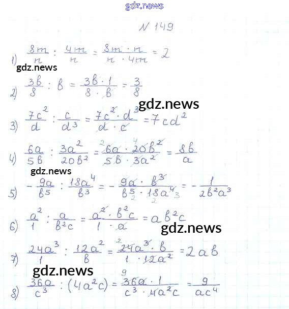 Как эффективно готовиться к домашним заданиям по Алгебре за 8 класс: лучшие стратегии и советы на gdz.news. Здесь подготовлен Учебник Мерзляк, Полонский, Якир Алгоритм успеха - §5. Умножение и деление рациональных дробей. Возведение рациональной дроби в степень 149 и готовые ответы к ним. Сверяй домашку и получай отличные оценки!