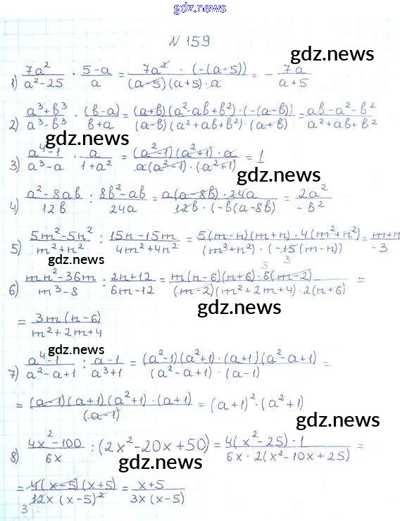 Как эффективно готовиться к домашним заданиям по Алгебре за 8 класс: лучшие стратегии и советы на gdz.news. Здесь подготовлен Учебник Мерзляк, Полонский, Якир Алгоритм успеха - §5. Умножение и деление рациональных дробей. Возведение рациональной дроби в степень 159 и готовые ответы к ним. Сверяй домашку и получай отличные оценки!