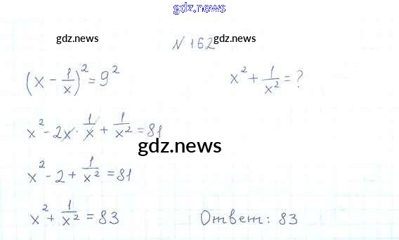 Как эффективно готовиться к домашним заданиям по Алгебре за 8 класс: лучшие стратегии и советы на gdz.news. Здесь подготовлен Учебник Мерзляк, Полонский, Якир Алгоритм успеха - §5. Умножение и деление рациональных дробей. Возведение рациональной дроби в степень 162 и готовые ответы к ним. Сверяй домашку и получай отличные оценки!