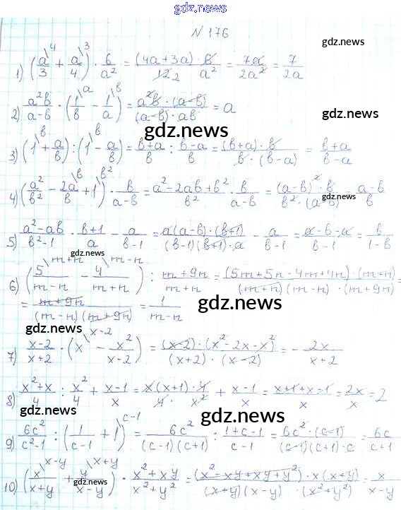 Как эффективно готовиться к домашним заданиям по Алгебре за 8 класс: лучшие стратегии и советы на gdz.news. Здесь подготовлен Учебник Мерзляк, Полонский, Якир Алгоритм успеха - §6. Тождественные преобразования рациональных выражений 176 и готовые ответы к ним. Сверяй домашку и получай отличные оценки!