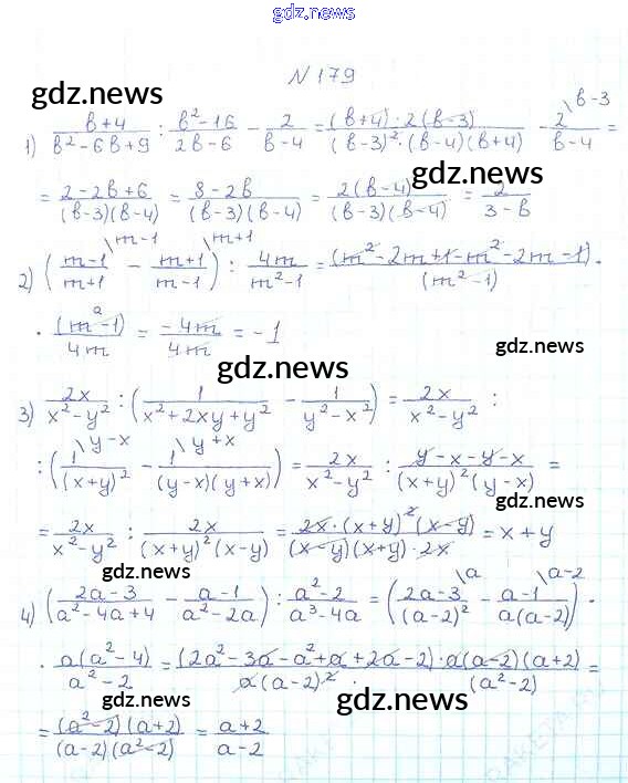 Как эффективно готовиться к домашним заданиям по Алгебре за 8 класс: лучшие стратегии и советы на gdz.news. Здесь подготовлен Учебник Мерзляк, Полонский, Якир Алгоритм успеха - §6. Тождественные преобразования рациональных выражений 179 и готовые ответы к ним. Сверяй домашку и получай отличные оценки!