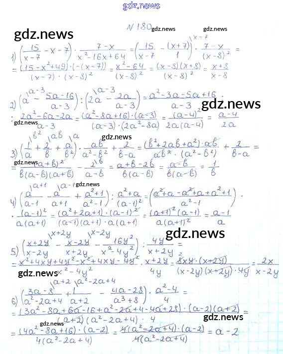 ГДЗ по Алгебре за 8 класс Мерзляк, Полонский Учебник Алгоритм успеха - §6. Тождественные преобразования рациональных выражений 180