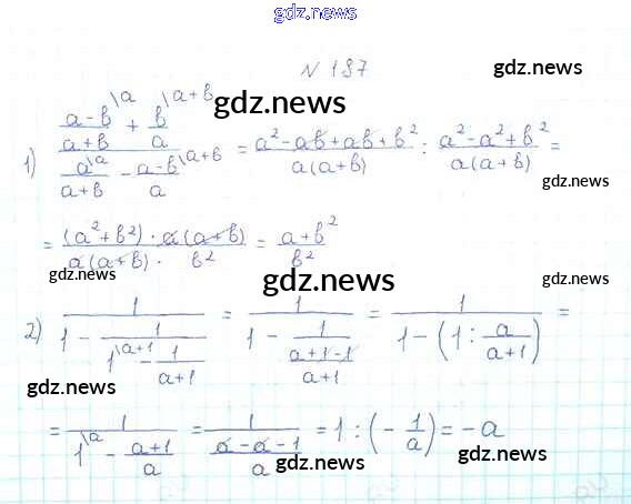 Как эффективно готовиться к домашним заданиям по Алгебре за 8 класс: лучшие стратегии и советы на gdz.news. Здесь подготовлен Учебник Мерзляк, Полонский, Якир Алгоритм успеха - §6. Тождественные преобразования рациональных выражений 187 и готовые ответы к ним. Сверяй домашку и получай отличные оценки!