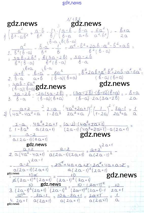 Как эффективно готовиться к домашним заданиям по Алгебре за 8 класс: лучшие стратегии и советы на gdz.news. Здесь подготовлен Учебник Мерзляк, Полонский, Якир Алгоритм успеха - §6. Тождественные преобразования рациональных выражений 188 и готовые ответы к ним. Сверяй домашку и получай отличные оценки!