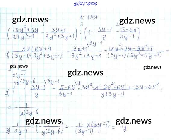 Как эффективно готовиться к домашним заданиям по Алгебре за 8 класс: лучшие стратегии и советы на gdz.news. Здесь подготовлен Учебник Мерзляк, Полонский, Якир Алгоритм успеха - §6. Тождественные преобразования рациональных выражений 189 и готовые ответы к ним. Сверяй домашку и получай отличные оценки!