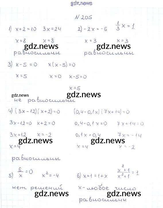ГДЗ по Алгебре за 8 класс Мерзляк, Полонский Учебник Алгоритм успеха - §7. Равносильные уравнения. Рациональные уравнения 205
