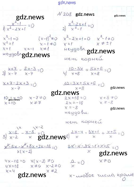 ГДЗ по Алгебре за 8 класс Мерзляк, Полонский Учебник Алгоритм успеха - §7. Равносильные уравнения. Рациональные уравнения 208