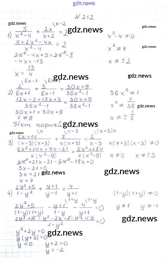 Как эффективно готовиться к домашним заданиям по Алгебре за 8 класс: лучшие стратегии и советы на gdz.news. Здесь подготовлен Учебник Мерзляк, Полонский, Якир Алгоритм успеха - §7. Равносильные уравнения. Рациональные уравнения 212 и готовые ответы к ним. Сверяй домашку и получай отличные оценки!