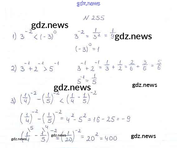 Как эффективно готовиться к домашним заданиям по Алгебре за 8 класс: лучшие стратегии и советы на gdz.news. Здесь подготовлен Учебник Мерзляк, Полонский, Якир Алгоритм успеха - §8. Степень с целым отрицательным показателем 255 и готовые ответы к ним. Сверяй домашку и получай отличные оценки!