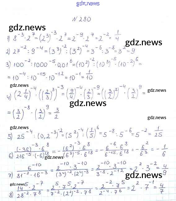 ГДЗ по Алгебре за 8 класс Мерзляк, Полонский Учебник Алгоритм успеха - §9. Свойства степени с целым показателем 280