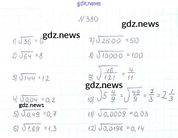Как эффективно готовиться к домашним заданиям по Алгебре за 8 класс: лучшие стратегии и советы на gdz.news. Здесь подготовлен Учебник Мерзляк, Полонский, Якир Алгоритм успеха - §12. Квадратные корни. Арифметический квадратный корень 380 и готовые ответы к ним. Сверяй домашку и получай отличные оценки!