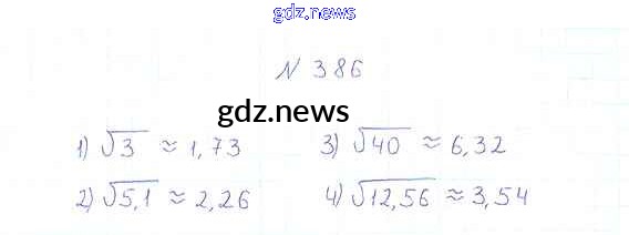 Как эффективно готовиться к домашним заданиям по Алгебре за 8 класс: лучшие стратегии и советы на gdz.news. Здесь подготовлен Учебник Мерзляк, Полонский, Якир Алгоритм успеха - §12. Квадратные корни. Арифметический квадратный корень 386 и готовые ответы к ним. Сверяй домашку и получай отличные оценки!