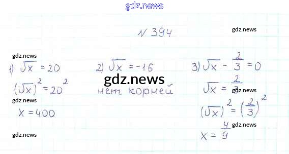 Как эффективно готовиться к домашним заданиям по Алгебре за 8 класс: лучшие стратегии и советы на gdz.news. Здесь подготовлен Учебник Мерзляк, Полонский, Якир Алгоритм успеха - §12. Квадратные корни. Арифметический квадратный корень 394 и готовые ответы к ним. Сверяй домашку и получай отличные оценки!