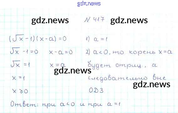 Как эффективно готовиться к домашним заданиям по Алгебре за 8 класс: лучшие стратегии и советы на gdz.news. Здесь подготовлен Учебник Мерзляк, Полонский, Якир Алгоритм успеха - §12. Квадратные корни. Арифметический квадратный корень 417 и готовые ответы к ним. Сверяй домашку и получай отличные оценки!