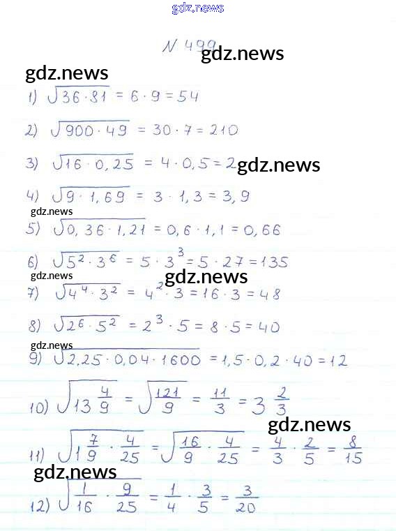 Как эффективно готовиться к домашним заданиям по Алгебре за 8 класс: лучшие стратегии и советы на gdz.news. Здесь подготовлен Учебник Мерзляк, Полонский, Якир Алгоритм успеха - §16. Свойства арифметического квадратного корня 499 и готовые ответы к ним. Сверяй домашку и получай отличные оценки!