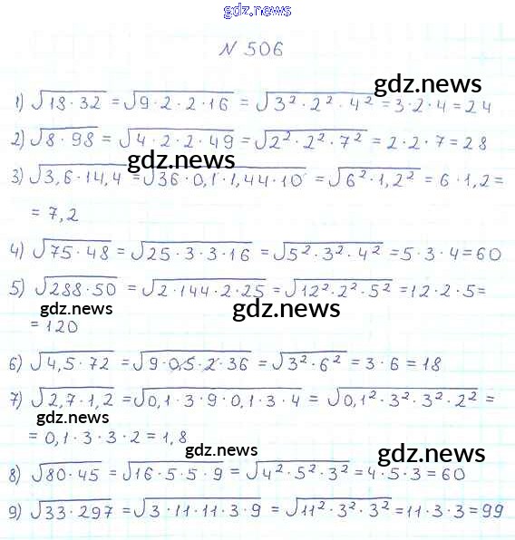 Как эффективно готовиться к домашним заданиям по Алгебре за 8 класс: лучшие стратегии и советы на gdz.news. Здесь подготовлен Учебник Мерзляк, Полонский, Якир Алгоритм успеха - §16. Свойства арифметического квадратного корня 506 и готовые ответы к ним. Сверяй домашку и получай отличные оценки!
