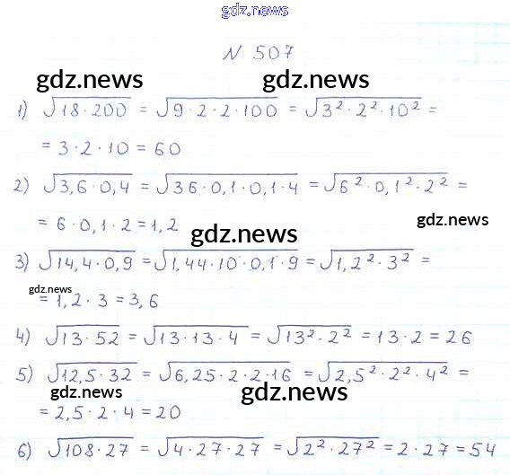 Как эффективно готовиться к домашним заданиям по Алгебре за 8 класс: лучшие стратегии и советы на gdz.news. Здесь подготовлен Учебник Мерзляк, Полонский, Якир Алгоритм успеха - §16. Свойства арифметического квадратного корня 507 и готовые ответы к ним. Сверяй домашку и получай отличные оценки!