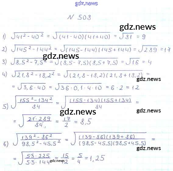 Как эффективно готовиться к домашним заданиям по Алгебре за 8 класс: лучшие стратегии и советы на gdz.news. Здесь подготовлен Учебник Мерзляк, Полонский, Якир Алгоритм успеха - §16. Свойства арифметического квадратного корня 508 и готовые ответы к ним. Сверяй домашку и получай отличные оценки!