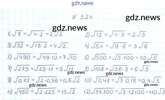 Как эффективно готовиться к домашним заданиям по Алгебре за 8 класс: лучшие стратегии и советы на gdz.news. Здесь подготовлен Учебник Мерзляк, Полонский, Якир Алгоритм успеха - §17. Тождественные преобразования выражений, содержащих арифметические квадратные корни 524 и готовые ответы к ним. Сверяй домашку и получай отличные оценки!
