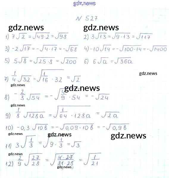 Как эффективно готовиться к домашним заданиям по Алгебре за 8 класс: лучшие стратегии и советы на gdz.news. Здесь подготовлен Учебник Мерзляк, Полонский, Якир Алгоритм успеха - §17. Тождественные преобразования выражений, содержащих арифметические квадратные корни 527 и готовые ответы к ним. Сверяй домашку и получай отличные оценки!