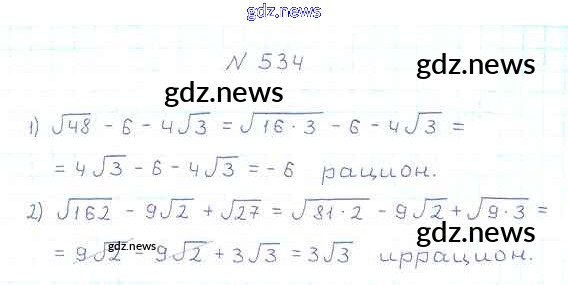 Как эффективно готовиться к домашним заданиям по Алгебре за 8 класс: лучшие стратегии и советы на gdz.news. Здесь подготовлен Учебник Мерзляк, Полонский, Якир Алгоритм успеха - §17. Тождественные преобразования выражений, содержащих арифметические квадратные корни 534 и готовые ответы к ним. Сверяй домашку и получай отличные оценки!