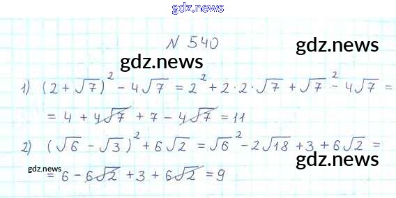 ГДЗ по Алгебре за 8 класс Мерзляк, Полонский Учебник Алгоритм успеха - §17. Тождественные преобразования выражений, содержащих арифметические квадратные корни 540