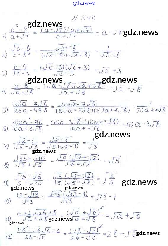 Как эффективно готовиться к домашним заданиям по Алгебре за 8 класс: лучшие стратегии и советы на gdz.news. Здесь подготовлен Учебник Мерзляк, Полонский, Якир Алгоритм успеха - §17. Тождественные преобразования выражений, содержащих арифметические квадратные корни 546 и готовые ответы к ним. Сверяй домашку и получай отличные оценки!