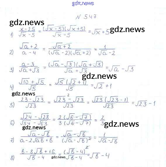 Как эффективно готовиться к домашним заданиям по Алгебре за 8 класс: лучшие стратегии и советы на gdz.news. Здесь подготовлен Учебник Мерзляк, Полонский, Якир Алгоритм успеха - §17. Тождественные преобразования выражений, содержащих арифметические квадратные корни 547 и готовые ответы к ним. Сверяй домашку и получай отличные оценки!