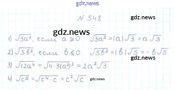 Как эффективно готовиться к домашним заданиям по Алгебре за 8 класс: лучшие стратегии и советы на gdz.news. Здесь подготовлен Учебник Мерзляк, Полонский, Якир Алгоритм успеха - §17. Тождественные преобразования выражений, содержащих арифметические квадратные корни 548 и готовые ответы к ним. Сверяй домашку и получай отличные оценки!