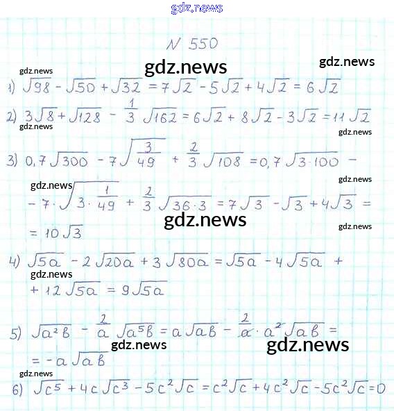 ГДЗ по Алгебре за 8 класс Мерзляк, Полонский Учебник Алгоритм успеха - §17. Тождественные преобразования выражений, содержащих арифметические квадратные корни 550