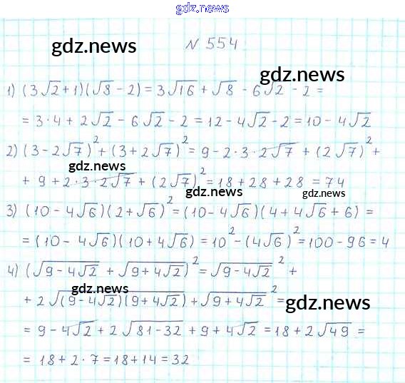 Как эффективно готовиться к домашним заданиям по Алгебре за 8 класс: лучшие стратегии и советы на gdz.news. Здесь подготовлен Учебник Мерзляк, Полонский, Якир Алгоритм успеха - §17. Тождественные преобразования выражений, содержащих арифметические квадратные корни 554 и готовые ответы к ним. Сверяй домашку и получай отличные оценки!