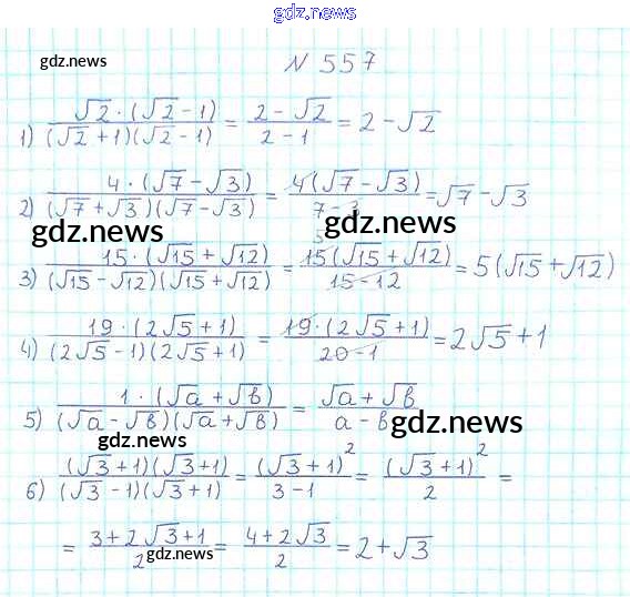 Как эффективно готовиться к домашним заданиям по Алгебре за 8 класс: лучшие стратегии и советы на gdz.news. Здесь подготовлен Учебник Мерзляк, Полонский, Якир Алгоритм успеха - §17. Тождественные преобразования выражений, содержащих арифметические квадратные корни 557 и готовые ответы к ним. Сверяй домашку и получай отличные оценки!