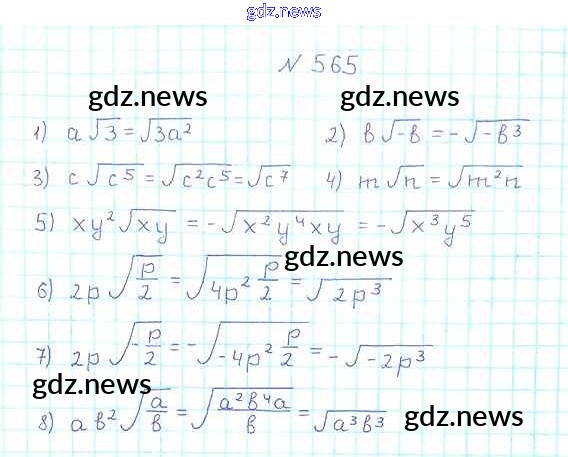 Как эффективно готовиться к домашним заданиям по Алгебре за 8 класс: лучшие стратегии и советы на gdz.news. Здесь подготовлен Учебник Мерзляк, Полонский, Якир Алгоритм успеха - §17. Тождественные преобразования выражений, содержащих арифметические квадратные корни 565 и готовые ответы к ним. Сверяй домашку и получай отличные оценки!