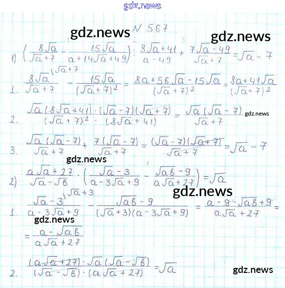 Как эффективно готовиться к домашним заданиям по Алгебре за 8 класс: лучшие стратегии и советы на gdz.news. Здесь подготовлен Учебник Мерзляк, Полонский, Якир Алгоритм успеха - §17. Тождественные преобразования выражений, содержащих арифметические квадратные корни 567 и готовые ответы к ним. Сверяй домашку и получай отличные оценки!